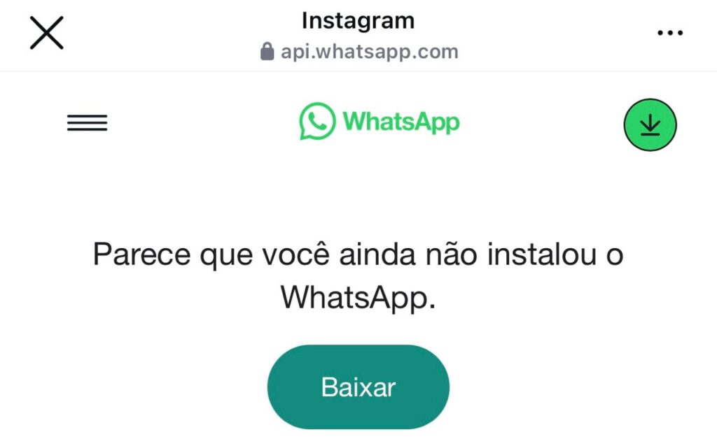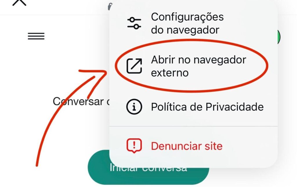 Se o Whatsapp não abrir, clique nos 3 pontinhos lá em cima, depois clique em "abrir no navegador externo"